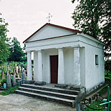 Капліца ўзведзена з бутавага каменю і атынкаванай цэглы, прамавугольная ў плане пад 2-схільным бляшаным дахам з вальмам над алтаром, бязвежавая і безапсідная. Галоўны фасад пазначаны 4-калонным тасканскім порцікам. Малітоўная зала перакрытая плоскай столлю, пад алтарнай часткай — склеп-пахавальня. Над мураваным алтаром — Укрыжаванне. Злева ад капліцы пабудавана 2-ярусная шатровая званіца з жоўтай цэглы (цяпер атынкавана). У 1882 г., пра што сведчаць мемарыяльныя пліты на слупах уваходнай брамы, тэрыторыя могілак была павялічана намаганнямі кс. Стэцкевіча і парафіянаў, абнесеная бутавым мурам і збудаваны домік вартаўніка. У пасляваенныя гады капліца была зачынена, з 1990-х гг. адноўлена і дзейнічае зноў. |