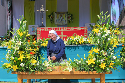 вI. Напачатку «Лі і не шкадуй ім вады, бо сёння будзе горача» — казала адна з законных сясцёр, паглядаючы на жоўтыя ліліі, якія так хораша ўпрыгожылі сцэну. Ужо а 7-й зранку невялічкая вёска Будслаў вяла актыўную падрыхтоўку да свята. Тут кожны займаўся сваёй справай: адны ставілі гандлёвыя намёты, іншыя з самай раніцы былі занятыя на кухні, а каля алтара вяліся апошнія прыгатаванні, дзе сёстры з лагоднай усмешкай палівалі кветкі. Раніца гэтага дня — 5 ліпеня — была незвычайнай. Напоўнена яна была радасцю і чаканнем, прадчуваннем свята, якое вось-вось павінна было распачацца. ![]() g II. Дажджавая неспадзяванка І вось прыкладна а 13-й гадзіне пачуліся першыя пілігрымкавыя спевы. Спачатку здалёк, а потым усё бліжэй, і яны радавалі сэрца: гэта пілігрымы набліжаліся да санктуарыя. Радасць і моц гэтых спеваў заўсёды ўражвалі мяне. Яны, пешыя пілігрымы, якія прайшлі дзясяткі і сотні кіламетраў, пераадолеўшы розныя цяжкасці, напэўна, як ніхто ўмеюць радавацца дасягненню мэты. Яны доўга чакалі гэтага і шмат ахвяравалі, каб укленчыць перад абразом Маці Божай Будслаўскай і адкрыць Ёй сваё сэрца. Ніхто не чакаў такога, бо заўсёды здаецца, што Бог абароніць ад непрыемнасцяў, асабліва ў такім святым месцы падчас святкаванняў. Дэкарацыі на алтары былі разбураны непапраўна. І гэта за паўтары гадзіны да распачацця урачыстай святой Імшы! Безумоўна, было шкада. І працы сясцёр, і разбураных намётаў, вымаклых кніг і гукавой апаратуры. Але мне падумалася: усё гэта – толькі рэчы. Часам Бог выкарыстоўвае рэчы (або нават забірае іх) для таго, каб… фармаваць нашу душу. Яна мае самую вялікую вартасць для Бога. Вось і зараз: дэкарацыі — усё, чым мы так хацелі упрыгожыць, «стварыць» гэту урачыстасць, — разбураныя. Можа, гэта так сталася, каб мы зразумелі, што па сутнасці мы нічога не можам Яму даць. Гэта Ён сам — усё дае нам. ![]() Дарэчы, цікавы момант. Намёт «Caritas» падчас буры выстаяў. Праз сцяну дажджавой вады можна было разгледзець, як унутры намёта людзі шчыльна стаялі адзін ля аднаго, плячо да пляча, каб разам супрацьстаяць стыхіі. Для мяне гэта быў нібы цудоўны і прыгожы знак адзінства — такімі павінны быць нашы хрысціянскія супольнасці, нашае сяброўства, нашае жыццё. j III. Ранішні цуд Жыццё ранішняга Будслава цікавае: людзей значна менш, але яны ёсць – адны паснулі на лаўках, завярнуўшыся ў цёпленькую коўдру, іншыя вяртаюцца з намётавага гарадка, хтосьці ўсё яшчэ купляе сабе ў палатках розныя «штучкі», а бабулі трывала моляцца на ружанцы... І толькі зрэдку чуецца: «Глядзі, якая прыгажосць!» — нехта таксама заўважыў ранішні цуд. ![]() аIV. Радасць сустрэчы Але самая галоўная Сустрэча, якая адбываецца тут, — гэта сустрэча з Богам праз заступніцтва Яго Маці. Сустрэча з Богам — самая каштоўная ў нашым жыцці, і яе мы, можа, часта не цэнім. ![]() Яшчэ адна сустрэча, напэўна, чакае Беларусь. На заканчэнне галоўнай Імшы падчас будслаўскіх урачыстасцяў, калі здавалася, што ўсё ўжо сказана і зроблена, легат Папы кардынал Жан-Луі Таран звярнуўся да прысутных з прамовай. Была яна шчырая і простая. «Я прыехаў сюды як пілігрым, а выязджаю як пасол, — кардынал зрабіў паўзу і акінуў вокам шматтысячны натоўп. Гэтая паўза нібы рыхтавала слухачоў да нейкіх вельмі важных словаў. — Я павінен пераканаць Святога Айца ў тым, што ён павінен сюды прыехаць. — Натоўп выбухнуў апладысментамі. — Праз тыдзен