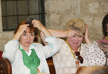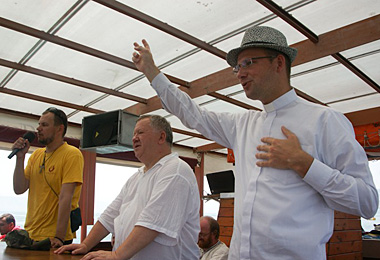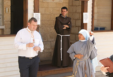 Робячы падсумаванне пілігрымкі, трэба сказаць, што ўсе ўдзельнікі нашага падарожжа за гэты час вельмі зрадніліся. Адзін аднаму гатовыя прыйсці на дапамогу. Часта можна было пачуць: Можа табе паднесці торбу? Хочаш, куплю табе лёд? Можа трэба крэм ад сонца? ...У гэтыя хвіліны я сяджу ў тэрмінале аэрапорта Тэль-Авіва, чакаючы наш самалёт. Кантроль мы прайшлі вельмі хутка, без асаблівых прыгод. Нашы пілігрымы з абпаленымі сонцам тварамі шчасліва ўсміхаюцца... Вяртаючыся да сваіх блізкіх, яны вязуць прыгожыя сувеніры. Я вязу з сабою кавалачак Святой Зямлі ў сваіх успамінах і на фотаздымках, у тым, што бачыў і чуў, чым буду дзяліцца са сваімі блізкімі бліжэйшыя дні. Дзякуем Пану Богу за гэты прыгожы час, падчас якога мы ўзмацнілі сваю веру, пашырылі свой кругагляд і ўзбагаціліся інтэлектуальна. Святая Зямля – Зямля Хрыста, дзякую табе за гэту цудоўную сустрэчу!!! Усім нашым чытачам я хачу падзякаваць за тое, што сачылі за нашай пілігрымкай, чылі мае справаздачы і ядналіся з намі духоўна! **** Дзень сёмы Перадапошні дзень нашай пілігрымкі прайшоў вельмі інтэнсіўна. Як заўсёды, з самага ранку мы вырушылі на спазнанне новых месцаў на Святой Зямлі. Можна сказаць, нашым дэвізам за гэтыя дні сталі словы – менш сну, але больш адкрыццяў. Арганізатары спланавалі нашу пілігрымку такім чынам, каб мы змаглі наведаць як мага больш месцаў, аб якіх ёсць згадкі ў Евангеллі. Надвор’е спрыяла нам і сёння. Часамі нават занадта. Спёка была невыноснай. Дарэчы, наш гід, які жыве ў Ізраілі з 1999 года, казаў, што даўно не памятае такой спёкі на гэтых землях. Мы ўзгадалі біблійнае запрашэнне Змёртвыхпаўсталага Хрыста, каб накіравацца да Галілеі і сустрэцца з Ім там. Адказваючы на гэта запрашэнне, з самага ранку мы выйшлі з нашага гатэлю ў Назарэце і пайшлі на сустрэчу з Хрыстом. Па дарозе мы былі вельмі здзіўленыя прыгажосцю кветак, якія раслі ў пустыні. Нягледзячы на спякоту і адсутнасць дажджоў, кветкі былі зялёнымі і яшчэ цвілі, ад чаго па наваколлі разносіўся іх прыемны водар. Страх адкінь, на глыбіню плыві Шмат цікавых месцаў, звязаных з асобай Хрыста, нам удалося сёння ўбачыць на свае вочы, разважаючы над зямным жыццём Езуса. Я хацеў бы распавесці хаця б пра Галілейскае возера. Сам Пан Езус не раз перасякаў яго, якое няшмат і змянілася з таго часу. Гэта Езусава возера. Гэта возера, а таксама вёскі і гарады, якія яго атачаюць, былі сведкамі публічнай дзейнасці Хрыста. Перамяняючы яго, Езус абвяшчаў радасную навіну аб збаўленні, аб Валадарстве Божым. Гэта з гэтага возера Езус паклікаў апосталаў, якія былі простымі рыбакамі, каб тыя сталі «лаўцамі» людзей. Шмат цудаў учыніў Езус у гэтым месцы. фота а. Андрэя Буйніча Возера Геназарэт – адзінае месца ў Палестыне, якое не зведала на сабе наступстваў апрацоўкі сякерай ці шпатэлем. Мы хадзілі па тых жа самым скалах, што і Хрыстус. Радаваліся тым жа краявідам, любаваліся тым жа хараством прыроды, удыхалі тое ж паветра... Амаль усё змянілася на зямлі, але возера засталося тым жа самым, як і горы, якія яго атачаюць. Надоўга запомніцца мне сёння прагулка на караблі па Галілейскім возеры. Лёгкія ўдары хваляў у наш карабель; рыбы, якіх можна ўбачыць праз вадзяную роўнядзь; далікатны ветрык – усё спрыяла таму, каб яшчэ раз паразважаць над урыўкам з Евангелля, кажучы пра цудоўны рыбны ўлоў. Чытаючы для ўсіх удзельнікаў пілігрымкі гэты фрагм