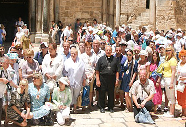 Гэтаксама як у жыцці ўсё імчыць, пастаянна развіваецца і імкнецца наперад, гэтаксама і наша пілігрымка ад Поля пастухоў прывяла нас у Гетсіманскі сад. Як падае Евангелле, у гэтым месцы неаднаразова спыняўся Езус падчас наведвання Ерусаліма, асабліва ў часе яўрэйскага свята Пасхі. Ведаў гэтае месца і апостал Юда, які менавіта тут выдаў Езуса першасвятарам, кніжнікам і старэйшынам (Мк 14, 43-52). Той Юдавы пацалунак таксама павінен быў адбыцца тут... «Юда, пацалункам выдасі Сына Чалавечага?» -- у гэтым месцы пачуў ад Езуса Юда. Для ўсіх нас гэта выклік і напамін, які заахвочвае да бесперапыннай працы і развіцця ў сабе Божага жыцця. Каб не быў наш штодзённы «пацалунак» здрадай Езусу, а імкненнем да дасканаласці, да якой запрашае нас Хрыстус Пан. ...Гэты дзень быў перапоўнены наведваннем святых месцаў. Уражанні, атрыманыя сёння, не забудуцца гадамі! Гэтаксама як і атмасфера гэтай зямлі. Аліўная гара, касцёл Dominus flevit (Пан плакаў), шлях Пальмовай нядзелі, базыліка Унебаўзяцця Найсвяцейшай Панны Марыі (там жыла Марыя перад смерцю), магіла цара Давіда, касцёл св. Пятра ў Галіканту... Усё гэта трэба яшчэ раз «пракруціць» у галаве, прааналізаваць, засяродзіцца. На жаль, часу не так шмат. Ён знойдзецца, відаць, толькі на зваротным шляху, калі мы вернемся дадому і праз штодзённае чытанне Божага слова ў думках і ў сэрцы будзем штораз вяртацца да гэтых біблійных здарэнняў... Туды, адкуль пайшло хрысціянства, дзе жыў і навучаў Езус – да Святой Зямлі... ****Дзень першы Перажыць Божае нараджэнне ў Бэтлееме У нядзелю свой дзень мы распачалі з малітвы, каб споўніць хрысціянскі абавязак, а таксама каб перажыць Божае нараджэнне ў палестынскім Бэтлееме. Для гэтага з самага ранку мы накіраваліся на т.зв. «Поле пастухоў» – месца, дзе анёл аб’явіўся пастушкам і распавёў ім пра нараджэнне Збаўцы ў Бэтлееме. На гэтым месцы мы прынялі ўдзел у святой Імшы, якую ўзначаліў Мітрапаліт Тадэвуш Кандрусевіч. Па заканчэнне літургіі арцыбіскуп заахвоціў пілігрымаў да спеву калядак. Спачатку пілігрымы выглядалі разгубленымі, бо дзіўна спяваць калядкі ў звычайны для Касцёла перыяд. Аднак, усвядоміўшы і адчуўшы тое знакавае месца, дзе анёл абвясціў аб нараджэнні Хрыста пастушкам, ідэя арцыбіскупа была падтрыманая. Мы наведалі таксама гроту пастушкоў, каб дасведчыць тое ўбоства, у якім яны жылі. Вячэралі, прымалі гасцей, адпачывалі... Цікава, а як выглядаў хлеў, дзе больш за дзьве тысячы гадоў таму нарадзіўся Збавіцель? Мы наведалі таксама Яфу. Яна зачаравала мяне. І я мяркую, не толькі мяне. Тут столькі гістарычных помнікаў! У тым ліку і старажытны марскі порт, вядомы найперш як месца, з якога Ёў спрабаваў уцячы ад паклікання Пана. Біблія кажа пра тое, што падчас шторму прарок быў выкінуты за борт карабля, а затым праглынуты гіганцкай рыбінай, у жываце якой прабываў на працягу трох дзён... Проста неверагодна. Месцы, у якіх калісьці стваралася гісторыя... І сёння гэтыя месцы можна паглядзець уласнымі вачыма. І пастарацца адчуць яе. Таксама тут у Яфе згодна з Дзеяннямі Апосталаў святы Пётр уваскрасіў дзяўчыну па імені Тавіта... А затым, спыніўшыся ля дома Сымона-гарбара, падчас малітвы ў яго здарылася азарэнне. Пасля гэтага азарэння ён быў перакананы, што і неяўрэі могуць таксама прымаць Святога Духа і прыналежаць да Касцёла. Будучы ў Яфе і думаючы пра Ёва, я ўзгадаў урывак са Старога Запавету, 