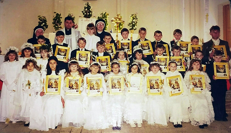 «Гэта адбылося 28 мая 1995 года ў мінскай архікатэдры. Нас было, здаецца, каля 30 чалавек (...) Памятаю тую Катэдру ў рыштаваннях, завешаных цэлафанам з батарэямі пад столяй (гэта быў час яе перабудовы са спартыўнай залы), памятаю як падала святло на алтар, а падчас самой Камуніі іграла скрыпка. «За тыдзень да сваёй Першай Камуніі я вывярнуў імбрык кіпеню на левую нагу. Тата паспеў у лічаныя секунды здзерсці вязаную шкарпэтку і, дзякуючы гэтаму, не даў назе зварыцца. Шпіталь, другая ступень апёку. Я так турбаваўся, што не траплю на сваю Першую Камунію... У пятніцу мяне ўсё ж выпусцілі са шпіталю. Але нагу ўсё роўна трэба было апрацоўваць нейкай маззю, пры гэтым бінт за кожным разам прыліпаў да раны і яго трэба было аддзіраць... Сёння, будучы бацькам, я разумею пачуцці мамы і таты падчас гэтай працэдуры. Перад Камуніяй тата ўкалоў мне абязбольваючага, на нагу адзелі мамін хатні тапак і пагналі ў касцёл. У працэсіі перад лідскай фарай стаяць было цяжкавата, дык прыселі з бацькамі на лаўку пры ўваходзе. Сястра Станіслава паглядзела на мяне і сказала: "Ты шчаслівы, табе Езус даў свае пакуты панасіць перад Камуніяй". Такія атрымаліся ўспаміны з тым часам». @Кс. Валерый Марціноўскі: «Мая першая Камунія адбылася ў 1996 годзе ў Мёрах. Ксёндз Пятрайціс дапусціў мяне без экзамену, бо я не меў ніводнага пропуску на катэхезах. Гэта было цудоўна, бо экзамен, як пасля расказвалі іншыя, быў сур’ёзны. Усё было па-беларуску. Тады я нават не ведаў, што парафія ў Мёрах — адна з першых, дзе дзетак вучылі на зразумелай ім мове. @Раман Калугін: «Гэтая падзея адбылася ў маім жыцці ў далёкім 2004 годзе (мне было ўжо амаль 14). І так склалася, што не ў маі, як у звычайных людзей, а ў Вялікі чацвер! І іспыт я здаваў цэлыя два разы (першы раз не давучыў пра сем галоўных грахоў). Ад рэдакцыі: А якой была першая Камунія ў Вас? Дасылайце свае гісторыі на