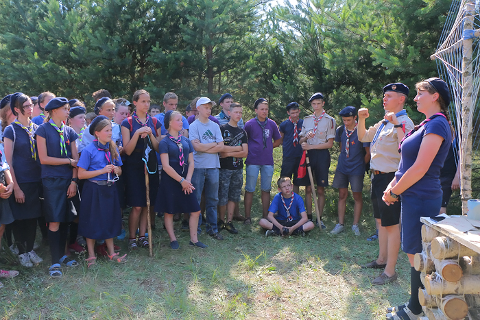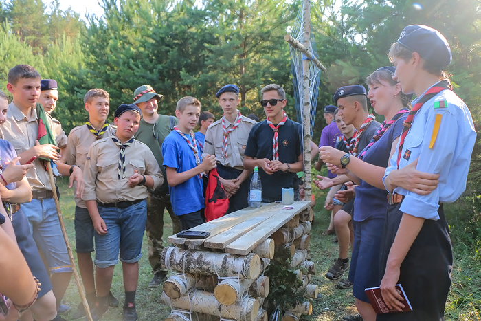 Падчас абеду карэспандэнты Catholic.by пазнаёміліся з дарослымі скаўтамі з Гродна — Алегам Сенкелем і яго жонкай Таццянай. Маладая сям'я займаецца бізнесам у сферы транспартных перавозак і гадуе двух сыноў, даказваючы сваім прыкладам, што скаўт можа быць паспяховым у любым узросце і ў розных сферах дзейнасці. Добра падмацаваўшы сілы, розныя коп'і сталі збірацца на Вялікую Скаўцкую Гульню, якая ў гэтым годзе прысвечана гісторыі беларускага скаўтынгу.