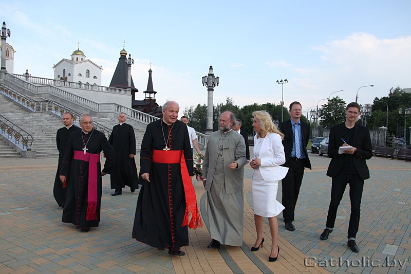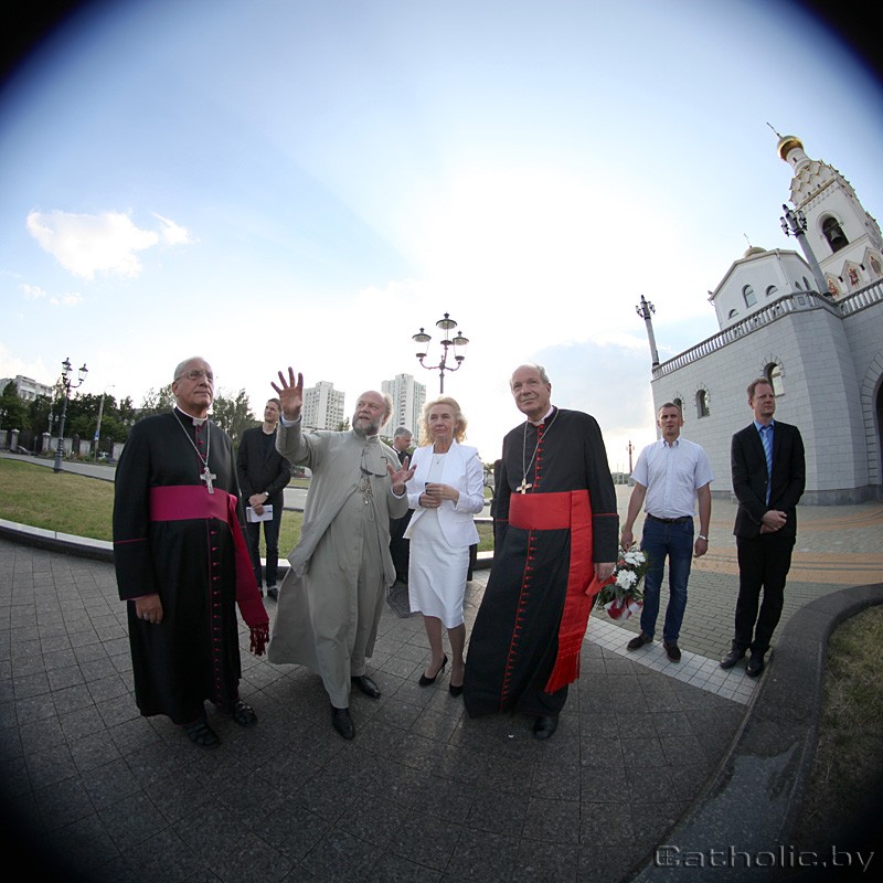 Вечарам 2 ліпеня каталіцкая дэлегацыя на чале з папскім пасланнікам на ўрачыстасці 25-годдзя заснавання Мінска-Магілёўскай мітраполіі кардыналам Крыстафам Шонбарнам OP, якога суправаджаў і арцыбіскуп Тадэвуш Кандрусевіч, наведала Усіхсвяцкую царкву ў Мінску. Гэты ўнікальны праваслаўны храм адметны тым, што ў ім захоўваюцца капсулы з парэшткамі салдат, палеглых у вайне 1812 г., Першай сусветнай і Вялікай Айчыннай войнах.