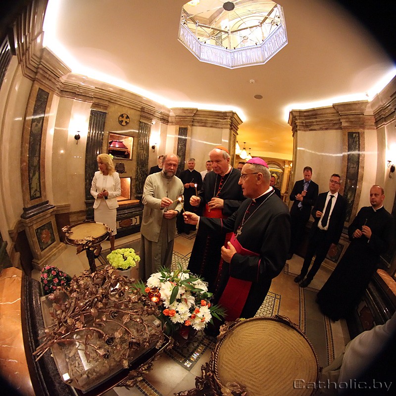 Адным з ключавых момантаў візіту стала наведванне кардыналам крыпты з парэшткамі ахвяр войнаў і лагера смерці Трасцянец. «Гэта тое месца, дзе губляюцца ўсялякія міжканфесійныя адрозненні», — адзначыў у крыпце храма протаіерэй.