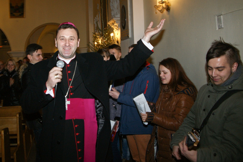 Іерарх упершыню сустрэўся з гродзенскім душпастырствам моладзі ў якасці біскупа, таму на пачатку Імшы сказаў: “Я прыбыў, каб убачыць вашу маладосць, а адначасова чэрпаць маладосць і радасць у Пану”. Гэтую радасць у святочны перыяд, як дадаў біскуп, кожны можа знайсці ў Бэтлееме, дзе “радасць, маладосць і весялосць, бо там моц Бога: Бог стаўся чалавекам, каб мы былі падобныя да Яго”. Іерарх заахвоціў прысутных да малітвы за ўсіх маладых людзей, каб тыя маглі распазнаць Пана і знайсці свой шлях да Бэтлеема.
