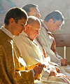 Падчас Імшы кансэкраваныя асобы аднавілі манаскія абяцанні. На пачатку Эўхарыстыі біскуп Юрый Касабуцкі з нагоды свята Ахвяравання Пана благаславіў свечкі, якія ўдзельнікі сустрэчы трымалі запаленымі ў руках. У гаміліі біскуп звярнуў увагу, што ў сцэне ахвяравання Езуса ў святыні, якая прыводзіцца ў чытанні Евангелля на свята Ахвяравання Пана, Марыя “ахвяруе Богу самае каштоўнае, што было ў Яе, а таксама ахвяруе Яму сваё жыццё”. Прарочыцу Ганну, якая, як гаворыцца ў Евангеллі, постам і малітвай служыла Богу ў святыні, можна назваць, па словах іерарха, правобразам манаскага жыцця. “Манаскае жыццё – гэта жыццё, прысвечанае Богу, - адзначыў біскуп. – У гэты дзень, узгадваючы, як Марыя і Юзаф прынеслі ў Ерузалемскую святыню Дзіцятка Езуса, мы асабліва ўзгадваем тых, хто ахвяраваў сваё жыццё Пану”. Па словах іерарха, “жыццё ў манаскіх супольнасцях павінна стаць святлом для асвятлення чалавека ўсіх часоў, усіх пакаленняў”. Біскуп назваў манаскае жыццё фактарам, які “ўмацоўвае дзейнасць Касцёла як у мінулым, так і сёння”. “Манаскае жыццё знаходзіцца ў самым сэрцы Касцёла, з’яўляецца маторам, які выклікае пульсаванне крыві ўсяго Касцёла, - падкрэсліў біскуп. – Гэта вельмі важная функцыя, бо Касцёл павінен быць жывым арганізмам”. “Кожны з нас павінен быць святлом, якое прынясе сучаснаму чалавеку Бога, - сказаў іерарх, звяртаючыся да кансэкраваных асобаў. – Сёння вы аднаўляеце свае манаскія абяцанні. Гэта нагода не толькі ўзгадаць, што вы прысягалі Богу, але і яшчэ раз папрасіць у Яго патрэбныя ласкі. Бо вы сапраўды сталіся падобнымі да Хрыста ва ўсім”. “Сучасны свет не разумее такога жыцця, - дадаў біскуп. – І, можа, сапраўды такая форма жыцця стане для сучасных людзей святлом, якое асветліць іх цемру”. “Вы прыпадабняецеся да Хрыста ў Яго чысціні, убостве, паслухмянасці. Але гэтага мала. Вы, як Ён, узялі на сябе крыж, - звярнуў увагу іерарх. – Гэта змаганне, каб быць у святле Хрыстовым, але такое змаганне мае сваю прыгажосць, бо яно дае неба”. “Манаскае жыццё – гэта адказнасць і заданне, яно немагчыма без малітвы, - нагадаў біскуп сабраным законнікам і законніцам. – Вы – святло свету: такія словы Езус кажа вам сёння”. Па словах біскупа, “калі сучасны чалавек убачыць шчаслівага манаха, манахіню, якая падыходзіць да яго і радасна ўсміхаецца”, – гэтага, напэўна, будзе дастаткова, каб “Езус змог пастукацца ў сэрца гэтага чалавека”. Біскуп ад імя Мітрапаліта Мінска-Магілёўскага арцыбіскупа Тадэвуша Кандрусевіча павіншаваў удзельнікаў сустрэчы з іх святам, дадаўшы, што цэлебруе гэтую Імшу за ўсіх законнікаў і законніц архідыяцэзіі. Напрыканцы сустрэчы прамовіў віцэ-правінцыял Ордэна капуцынаў у Беларусі а. Андрэй Жылевіч OFMCap. “Мы ўсе служым дзеля дабра Касцёла”, - ад імя сабраных кансэкраваных асобаў сказаў святар. Кажучы пра сустрэчу прадстаўнікоў інстытутаў кансэкраванага жыцця ў Беларусі з Апостальскім Нунцыем арцыбіскупам Клаўдыё Гуджэроцці, якая адбылася 22 кастрычніка 2013 г., віцэ-правінцыял нагадаў, што на ёй было вырашана стварыць структуру, якая падтрымае законнае жыццё ў Касцёле ў Беларусі, дапаможа законнікам і законніцам нанава адкрыць уласны харызмат і ўнесці яго ў лакальны Касцёл. Такая структура можа дапамагчы кансэкраваным асобам разам вырашаць свае праблемы і ўзбагачаць Касцёл у адпаведнасці са сваімі харызматам
