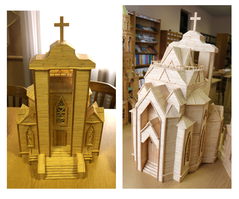 | На свае вочы: жыхар Маладзечна са звычайных запалак майструе макеты касцёлаў і цэркваў |