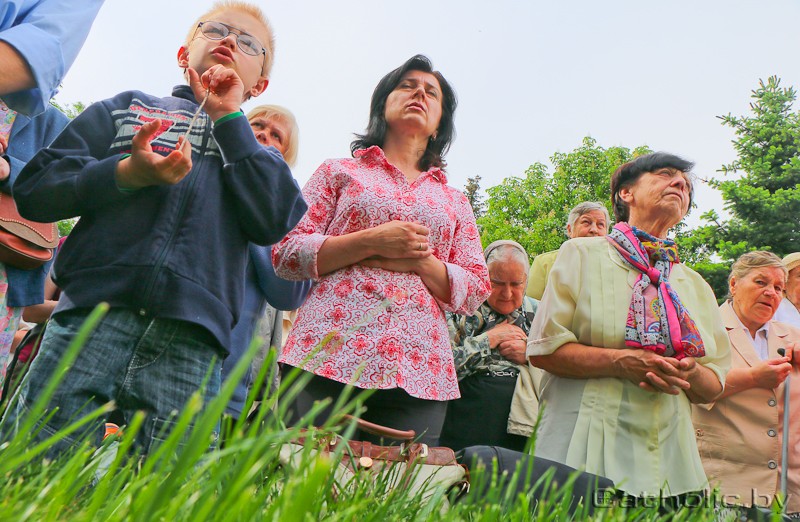Іду па праспекце і паварочваю да касцёла Найсвяцейшай Тройцы (св. Роха). За некалькі хвілін да Імшы тут ужо амаль не праціснуцца. У першых шэрагах, перад алтаром стаяць прыгожа ўбраныя дзеці і моладзь, якія некалькі дзён таму прынялі першую Камунію. За імі дарослыя і моладзь спрабуюць сканцэнтравацца перад пачаткам святой Імшы. Прыгожай міні-працэсіяй з касцёла да першага алтара на вуліцы выходзяць святары і пачынаецца святая Імша, якую цэлебруе Мітрапаліт Мінска-Магілёўскі арцыбіскуп Тадэвуш Кандрусевіч.