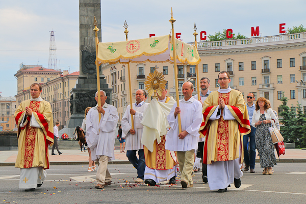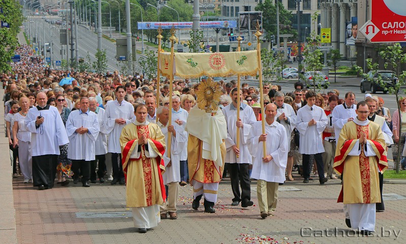 Больш за 10 тысяч католікаў выйшла 29 мая на вуліцы Мінска, каб прайсці ў працэсіі Божага Цела. Дарослыя, моладзь і дзеці прайшлі ад касцёла Найсвяцейшай Тройцы (св. Роха) на Залатой Горцы да архікатэдры Імя Найсвяцейшай Панны Марыі ўрачыстай працэсіяй, праслаўляючы Бога ў Найсвяцейшым Сакрамэнце. Працэсія Божага Цела стала ўжо традыцыйнай для Мінска, аднак, як і раней, кожны год збірае вялікую колькасць вернікаў не толькі са сталіцы, але і з іншых гарадоў. Сёлетняя працэсія — адна з самых маштабных.