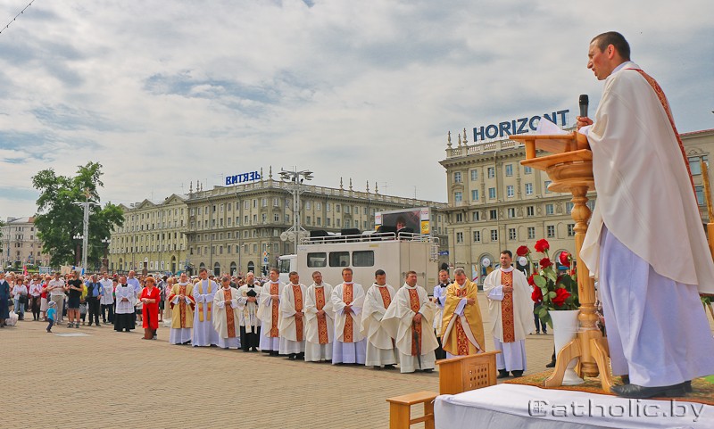 «Чарговы раз Божы Провід дазваляе нам адзначаць урачыстасць Найсвяцейшага Цела і Крыві Хрыста, якую традыцыйна мы называем святам Божага Цела. Знаходзячыся ў Святой Эўхарыстыі, Езус выходзіць па-за межы касцёлаў і капліц, каб быць бліжэй да чалавека, да месца яго працы, адпачынку і прабывання», — заўважыў у гаміліі Мітрапаліт.
